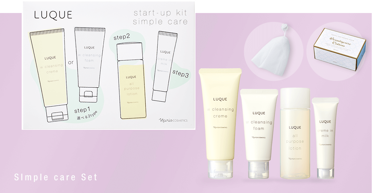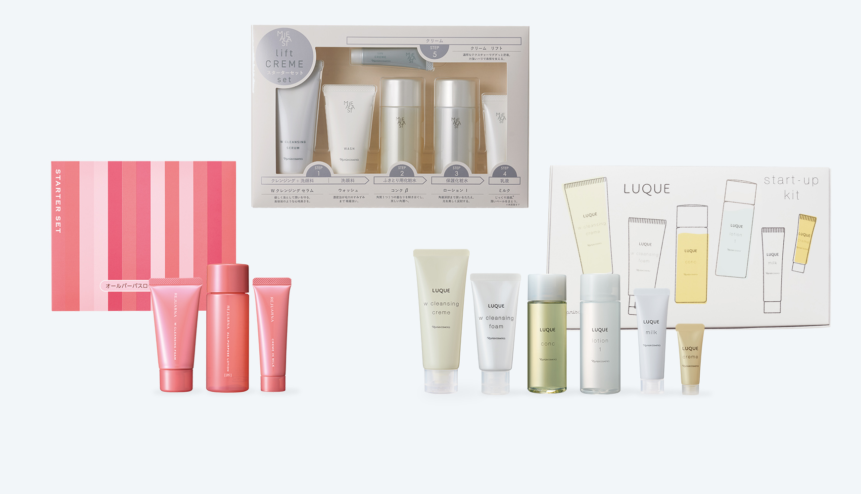 洗顔からフルラインで体感できる約4週間分のスキンケアセット。お肌の悩みに合わせて、マジェスタ・レジュアーナ・ルクエの3つのシリーズからお選びいただけます。